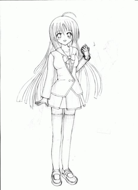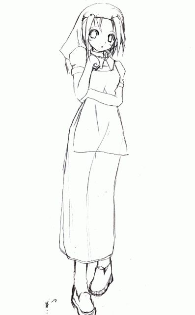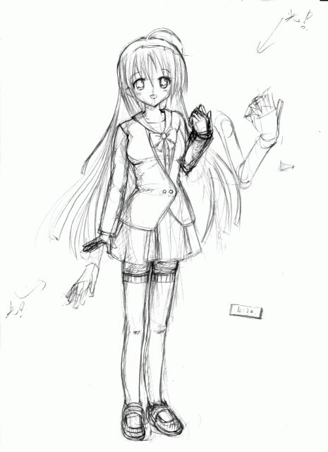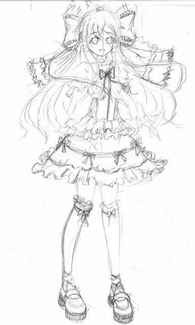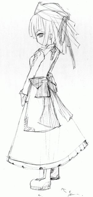 さて、2日目です。今回は全身を描こうということでこの絵を選びました。 これは黒の部分が模写のときに混乱を招きます。結構大変です。形もよがんでます。本物の絵より少しリボンが大きいです。 (これは自分的にはいいが・・・) ちなみに左足は自己的想像力を巧みに駆使し、描きました。 まあ、回数こなしていけば、少しづつ線には慣れていくでしょう。あとデッサンやらないと話になりませんなぁ・・・ 紙に上手くまとめられたけど、これだけで100分かかったorz |